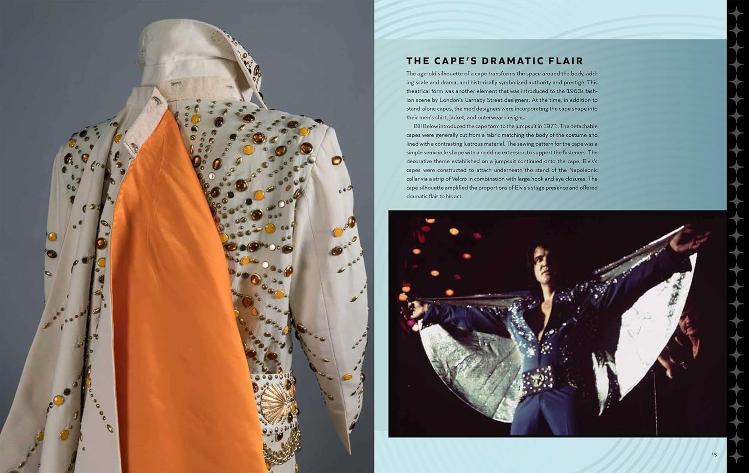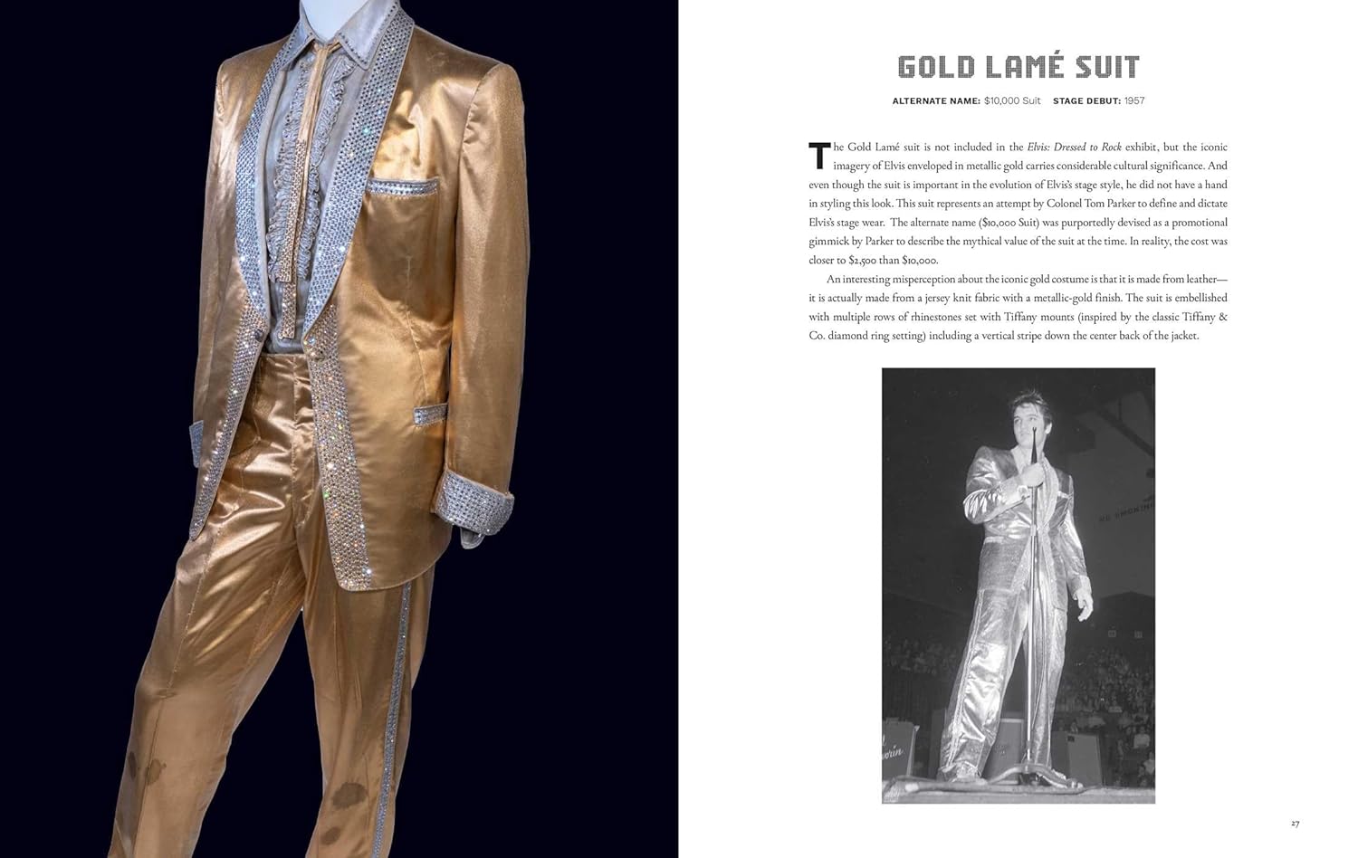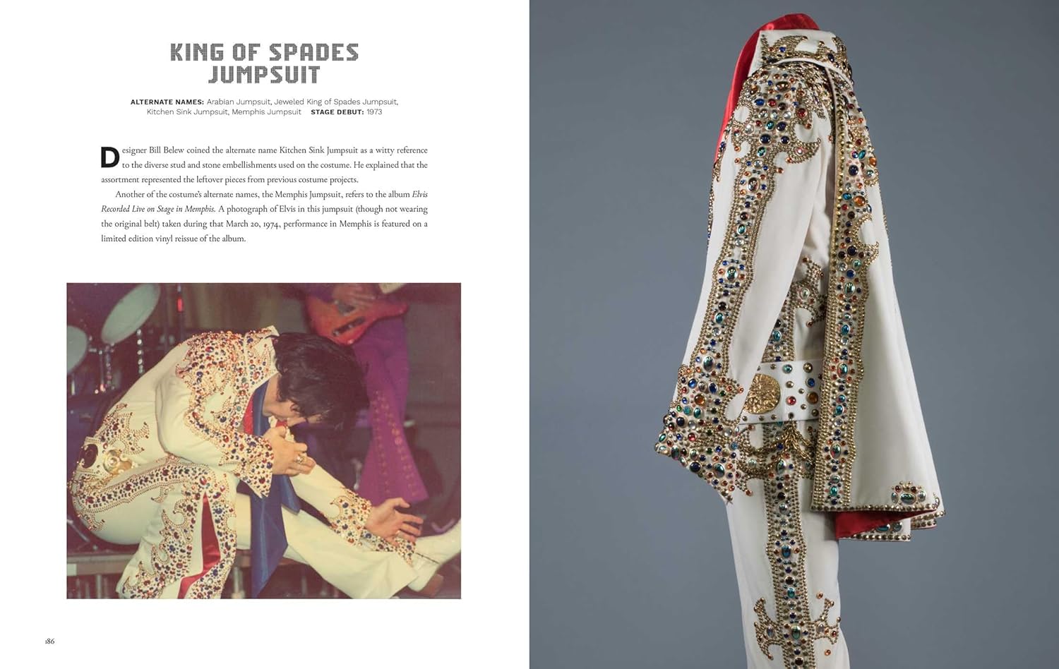 Informações detalhadas de arquivo sobre os ternos, incluindo a lista definitiva de nomes para os macacões, e um contexto histórico fascinante e insights sobre os detalhes e a construção das peças da renomada historiadora de figurinos Karan Feder, acompanham fotografias impressionantes e detalhadas de cada peça. Profusamente ilustrado com novas fotografias de cada peça no arquivo, imagens de Elvis no palco com os ternos e capas de álbuns nas quais eles aparecem, esboços raros do figurinista Bill Belew e muito mais, este belo livro oferece um olhar sobre o estilo do Rei como nunca antes.