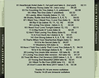 Track listing: 01 Heartbreak Hotel (take 5 -1st part and take 4 – 2nd part) 02:11