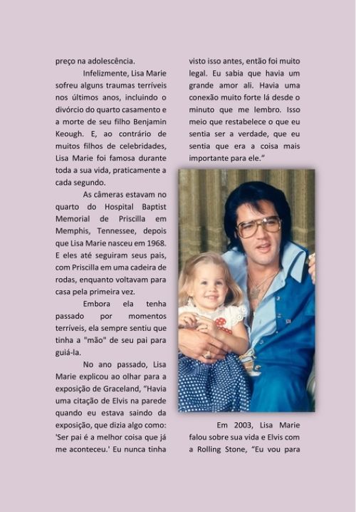 Neste livro, com mais de 250 páginas, você vai encontrar matérias especiais sobre Elvis Presley, como: 45 fatos sobre Elvis que você deve saber; A história dos fã clubes brasileiros de Elvis; A retrospectiva 2022 de tudo o que saiu em CDs e livros e foi notícia sobre Elvis; Matéria especial sobre a filha de Elvis, Lisa Marie.
