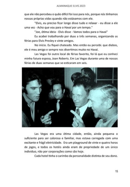 Nesse livro com mais de 220 páginas, você vai encontrar matérias especiais sobre Elvis Presley, como: Um review sobre os principais LPs lançados de Elvis no Brasil; Na estrada com Elvis: por Joe Esposito; Meu primeiro e último encontro com Elvis: por Linda Thompson; A retrospectiva 2023 de tudo o que saiu em CDs e livros e foi notícia sobre Elvis; Matéria especial sobre a filha de Elvis, Lisa Marie.